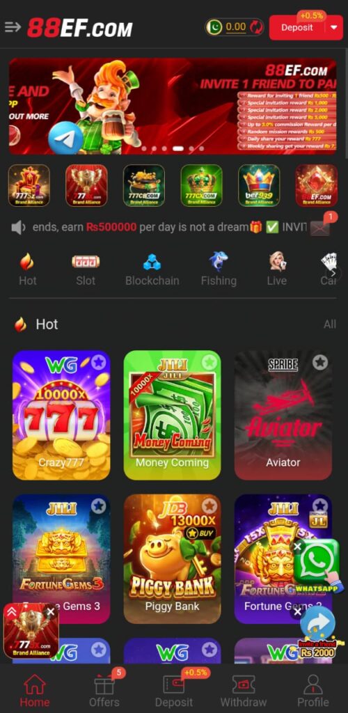 88EF Game is quickly becoming one of Pakistan’s favorite online earning casino platforms. With a broad selection of slots, lotteries, betting, fishing, and card games, it brings casino‑style excitement into your home. Add in support for EasyPaisa and JazzCash, and you get a seamless way to deposit, play, and withdraw real money all from your sofa.